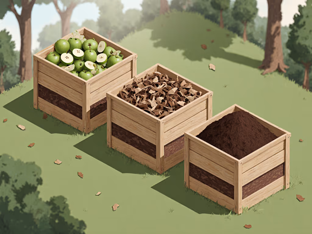 - Size bins correctly: Use a 3-bin system (1: active filling, 2: curing, 3: finished storage). Each bin should hold 1 week's scraps. Example: 50 lbs/week → 3 bins × 18 cubic feet each.